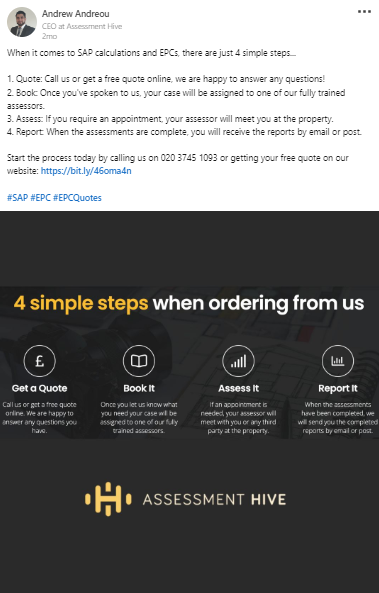 Regular posting means Assessment Hive is creating a visible brand presence on LinkedIn and Facebook.
