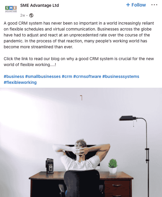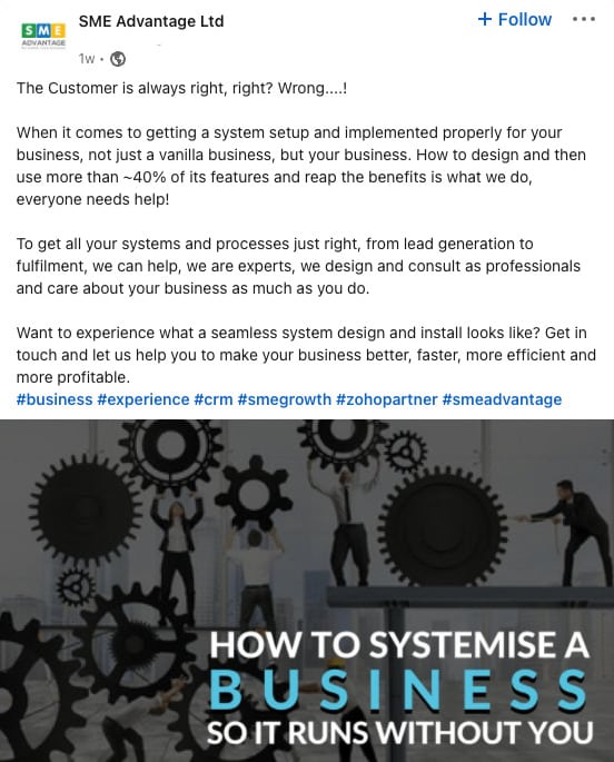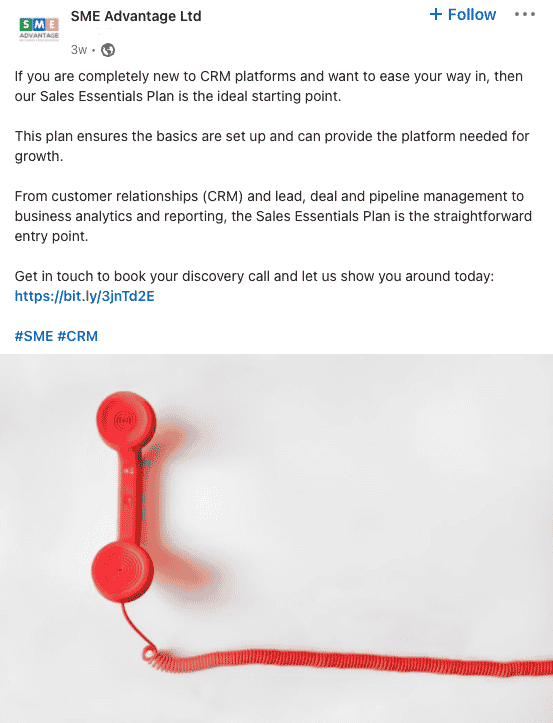 SME Advantage signed up for the Posts Plan opting for three posts per week to the company’s LinkedIn and Facebook pages.