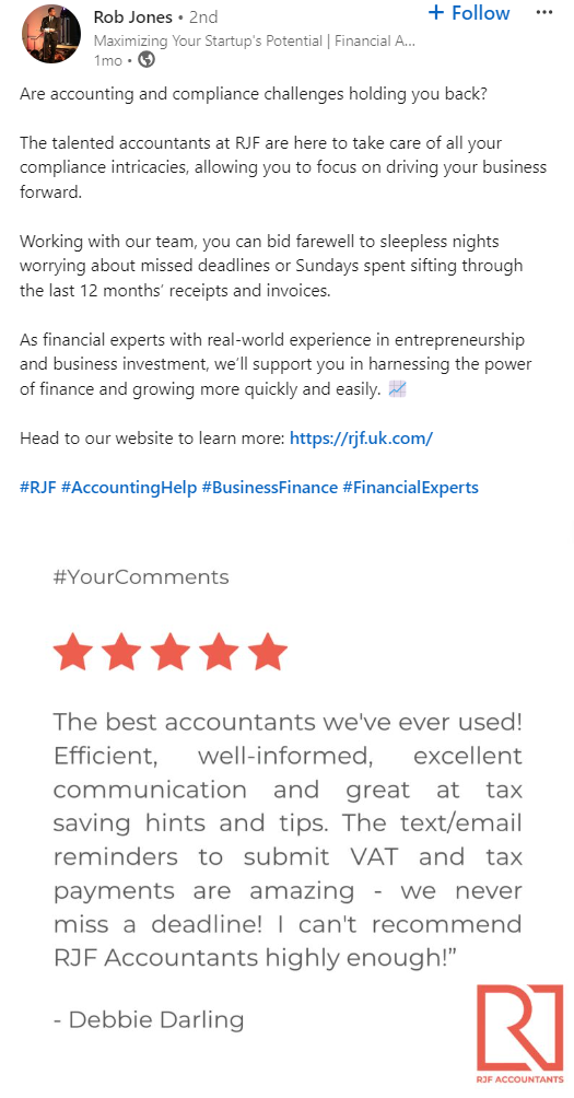 “I kept seeing your posts and now I’m ready for your services”: RJF Accountants Generate Hot Leads on LinkedIn
