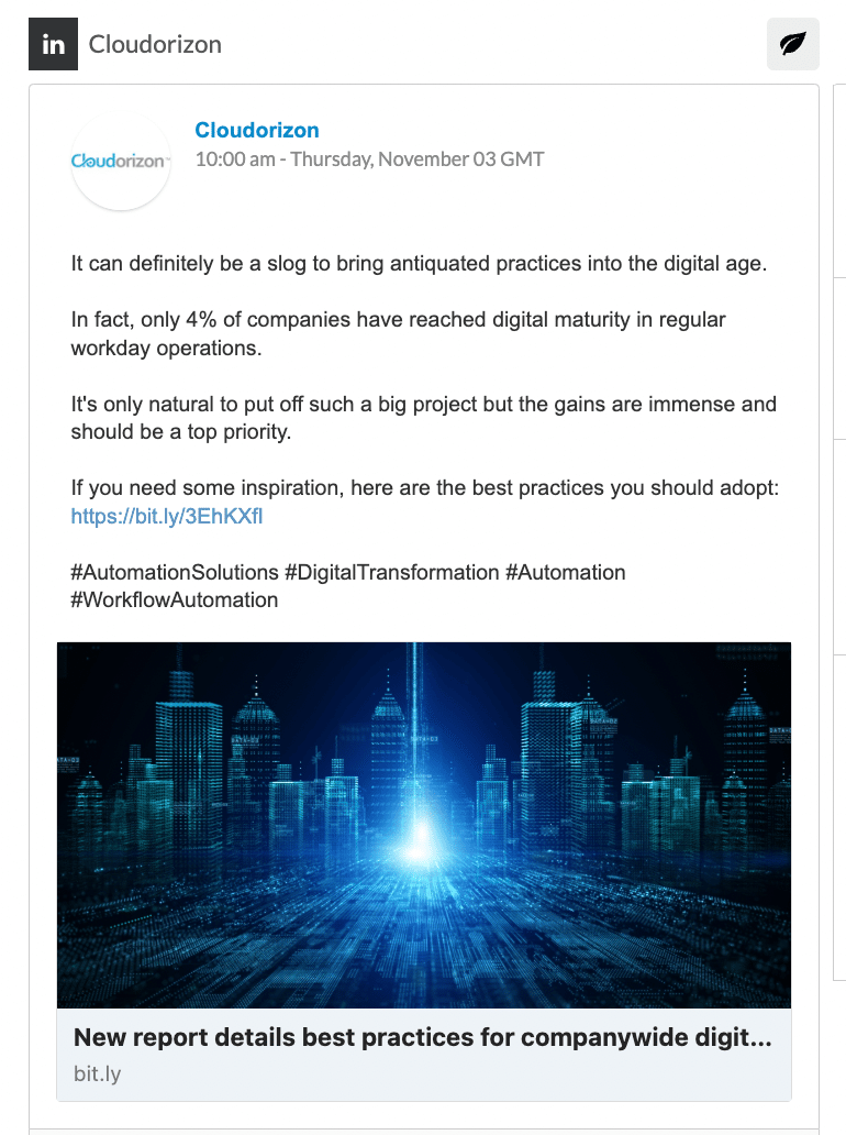 Now they’re on our Posts Plan, with regular posts to Cloudorizon’s LinkedIn and Twitter pages.