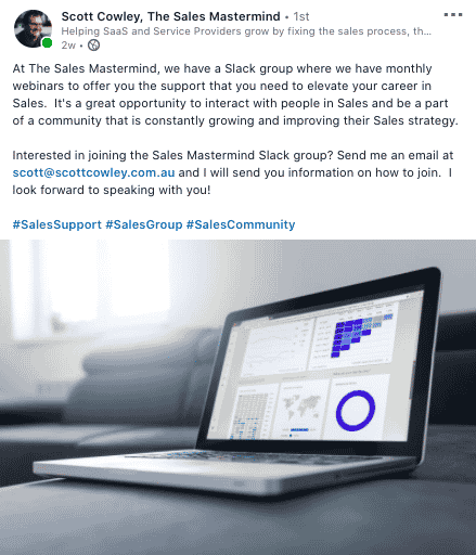 Scott Cowley founded The Sales Mastermind in 2019. The Sales Mastermind is a community for sales leaders, who aren’t naturally sales people. Members are agency owners, SaaS founders, or anyone who starts a company and discovers the art of finding new business is way tougher than they expected! Members range from one-man bands, right up to business owners managing multiple businesses and sales organisations.