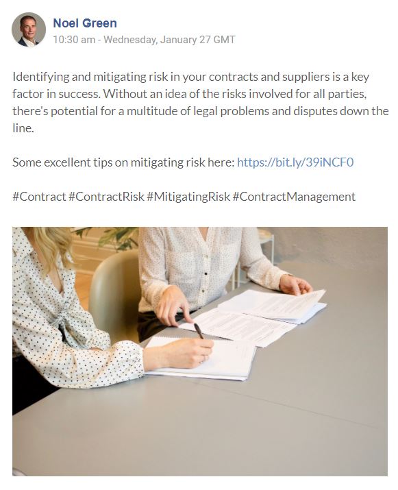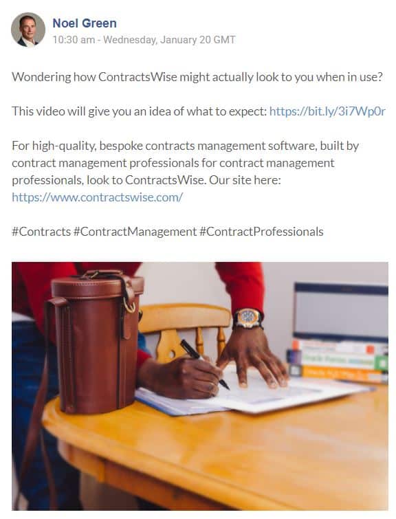 Posts we’ve crafted for Noel, Founder of ContractsWise. Click on a post to make it larger:
