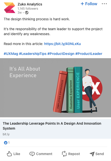 Now, Zuko is posting regular, industry-relevant posts and getting a steady drumbeat going on their socials – something they wouldn’t have had the time to create without our help.