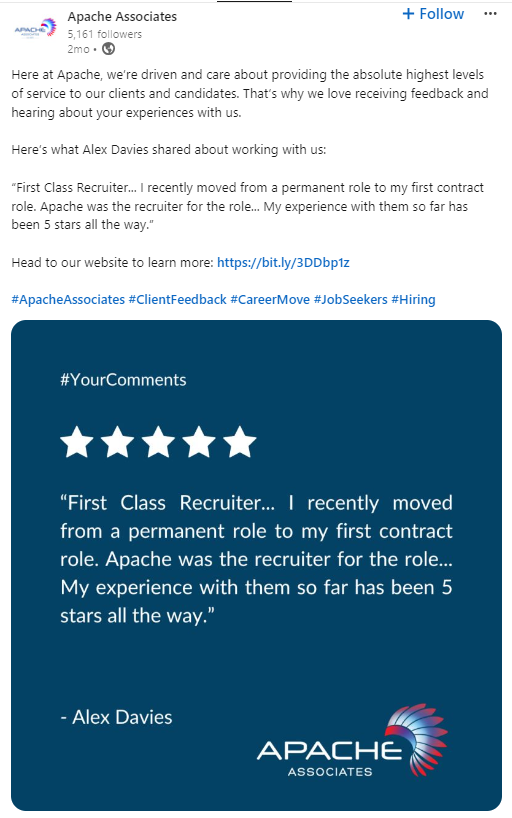 “It Works Brilliantly”: How IT Recruiter Apache Associates Increases LinkedIn Engagement
