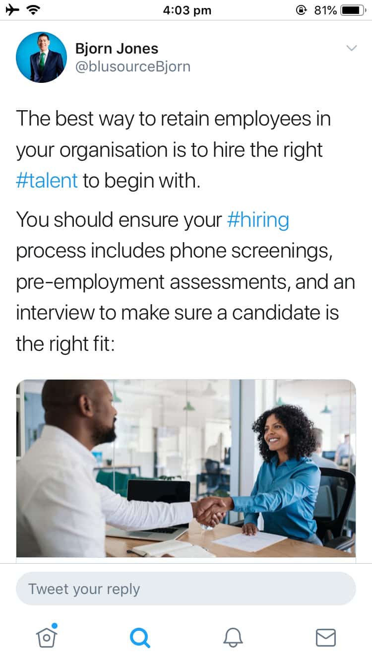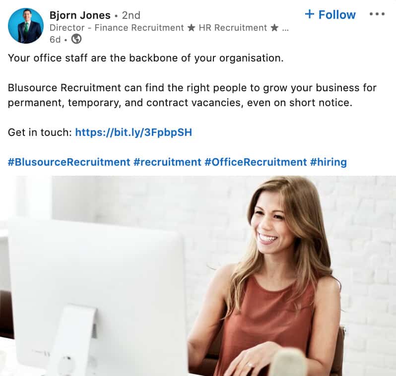 Bjorn says it is important for Blusource Recruitment to be active on social media because a lot of the company’s business comes through referrals and general awareness.