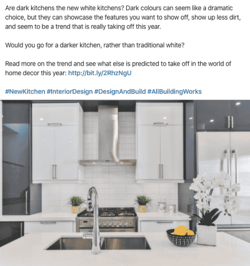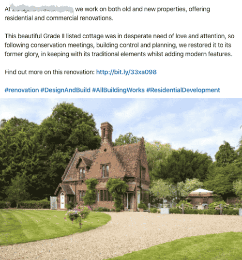 Social Media Posts crafted for customers in Construction Investment, Building Design, Maintenance, Property Insurance Repairs – and more!