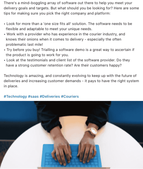 Social Media Posts crafted for clients in E-commerce Logistics, Courier Software – and more!