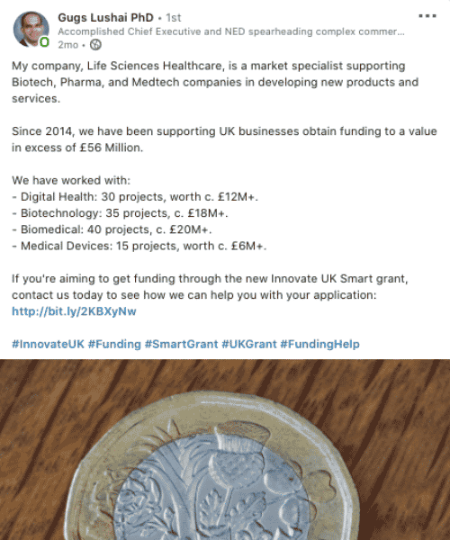 From £120 for up to 2 pieces of content (1,000 words) per month. Order Blogs, Mailing List Newsletters, or LinkedIn Newsletters: