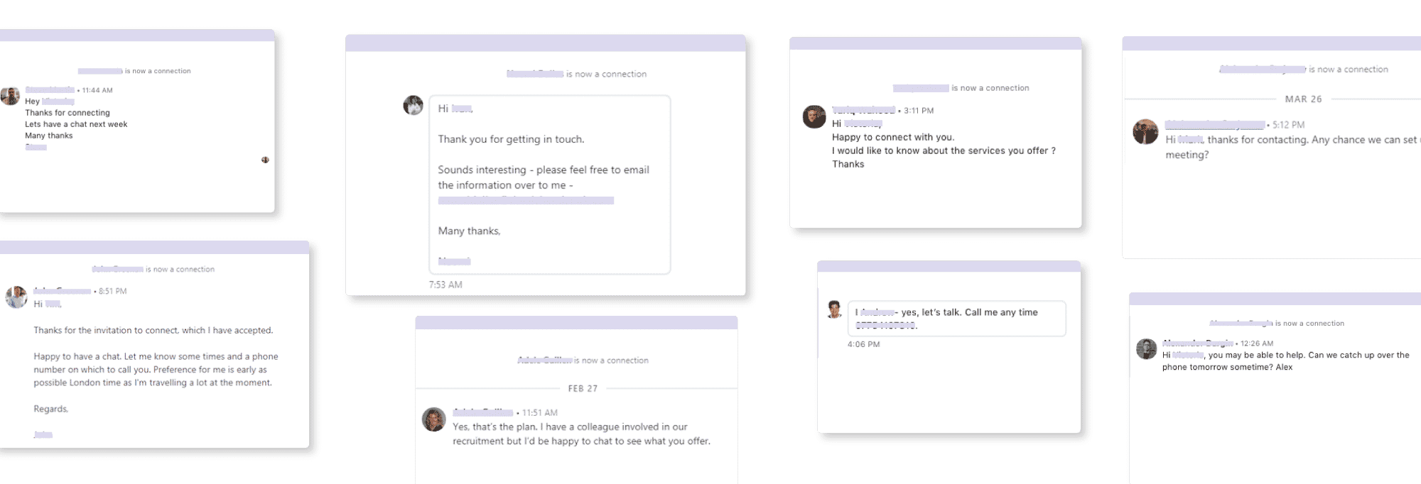 Examples From 100 Pound Social Clients’ LinkedIn Inboxes